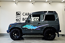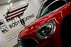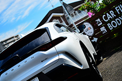 当店は特殊な照明でキズを確認し作業工程を決断しております。ガレージには余分な物は置かず、うっかりミスが無いようスペースには余裕があるよう店舗設計しました。