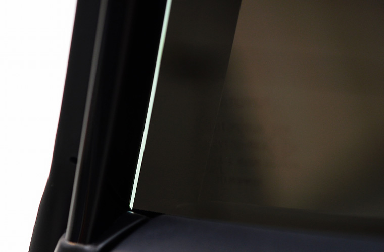 ディーラーでの施工は、「窓の隙間」「三角窓」「ストップランプ」「デジタルインナーミラー」「コネクター部分」の切り抜きなども極端に大きく、見た目のこだわりをまったく感じません。